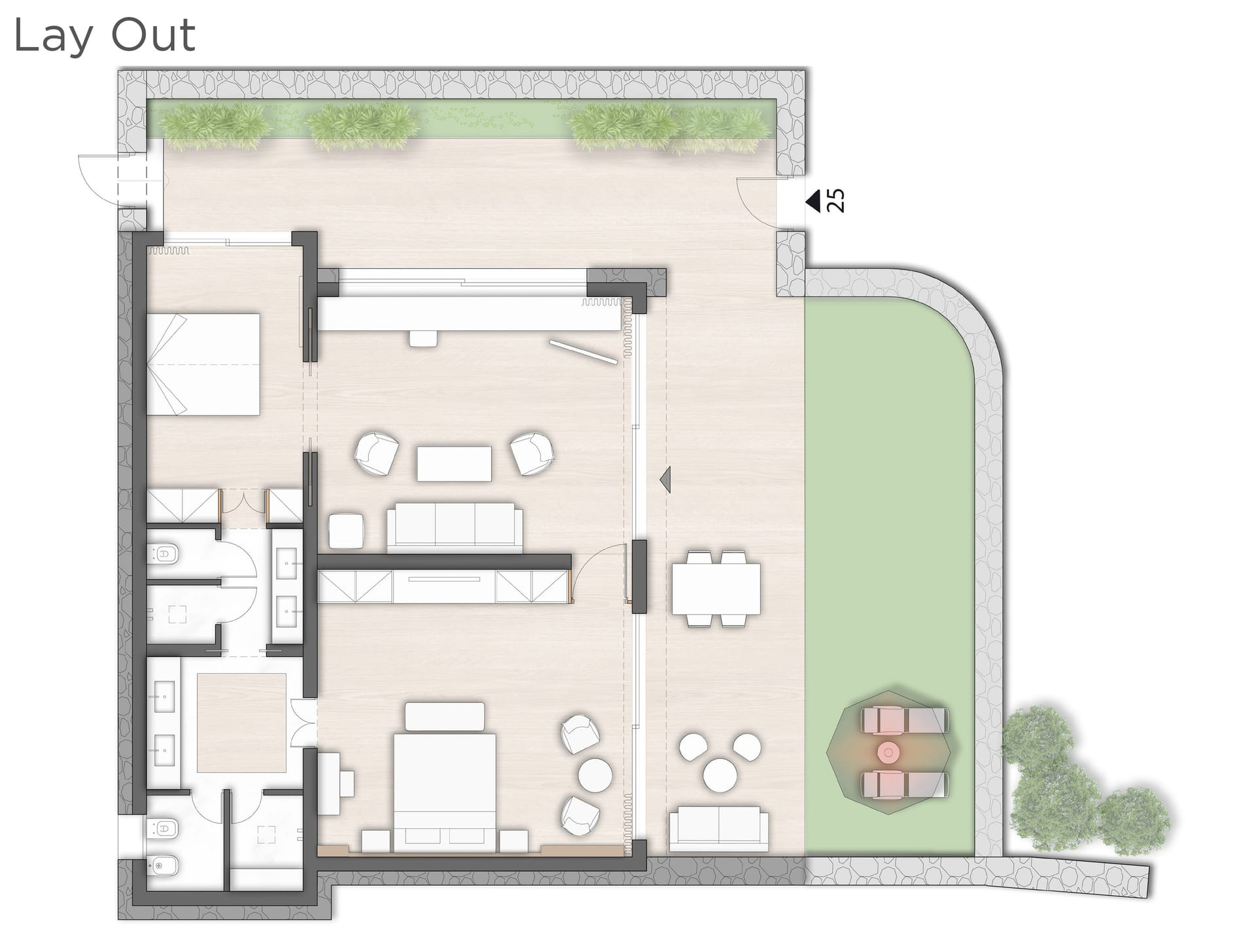This lovely suite is ideally positioned close to one of the resort’s private sandy beaches and is composed of two comfortable double bedrooms, each with a TV. There is a separate spacious living room, which may be used as a third bedroom and two luxurious bathrooms with separate shower cabins. The outside area offers two private terraces, each with a sitting area and one with a small garden Special features include Wi-Fi and a CD system.